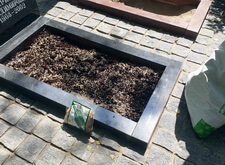 Следующим этапом было облагораживание цветников. Мы заполнили их грунтом, который сразу же опрыскали удобрениями. Это позволило практически сразу же получить зеленеющую траву на могилах.