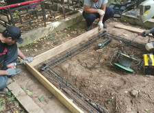 Для начала мы демонтировали уже имеющиеся элементы: снесли бетонный цоколь и изъяли стоящие кресты.