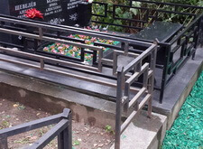 К сожалению, не сохранилось фотографий места захоронения до исполнения работ. Попробую описать словами. Калитка было отломана, ограда шелушилась и была покрыта ржавчиной, цветники были разобраны и перед плитой был холм земли после последних похорон.