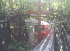 Могила стандартная, не большая. Когда-то здесь стоял гранитный памятник и была высокая ограда. После очередного захоронения плиту убрали в сторону, цветник тоже подняли, переднюю часть ограду демонтировали, установили временный крест.